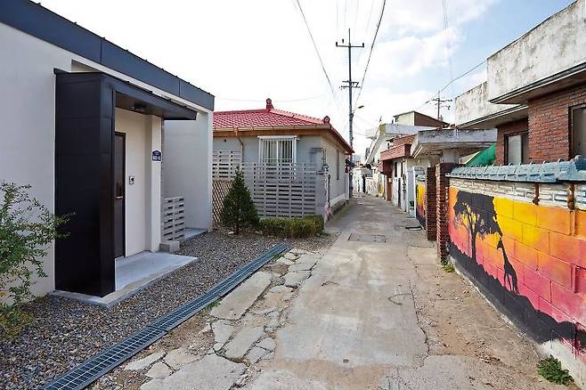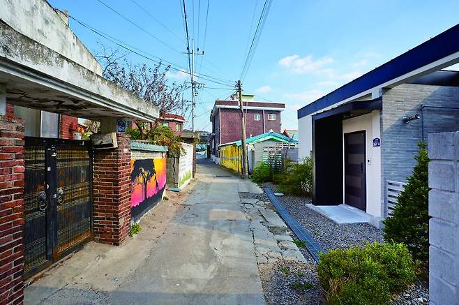 낡은 집과 그렇지 않은 집들이 혼재된 파주의 한 주택단지. 담벼락에 사뿐히 앉은 만화 캐릭터가 정겹다. 누구의 솜씨인지는 몰라도 이 그림이 없었을 때를 상상해 보면, 한 장의 그림으로 동네의 이미지가 훨씬 밝고 환해졌다는 것을 짐작할 수 있다. 분명 따뜻한 마음을 담아 한 획 한 획 그었을 누군가가 괜스레 고맙고 반가운 마음이 든다.