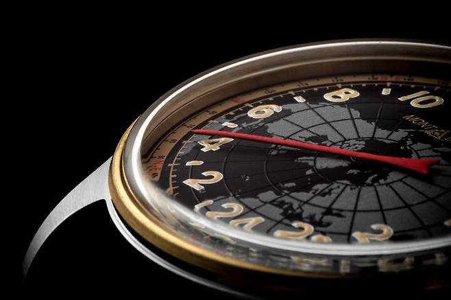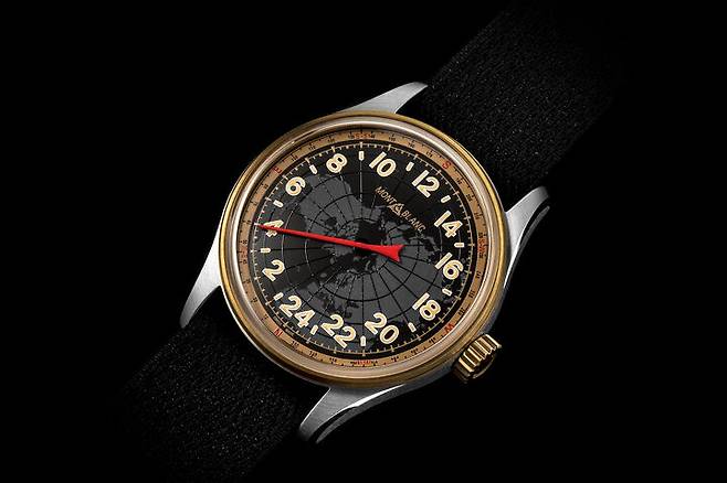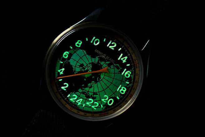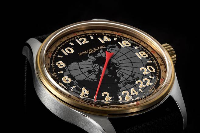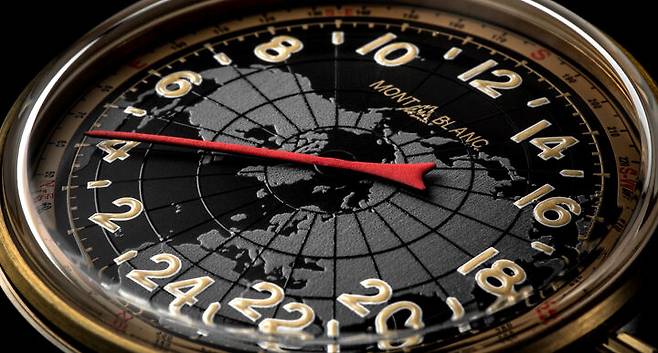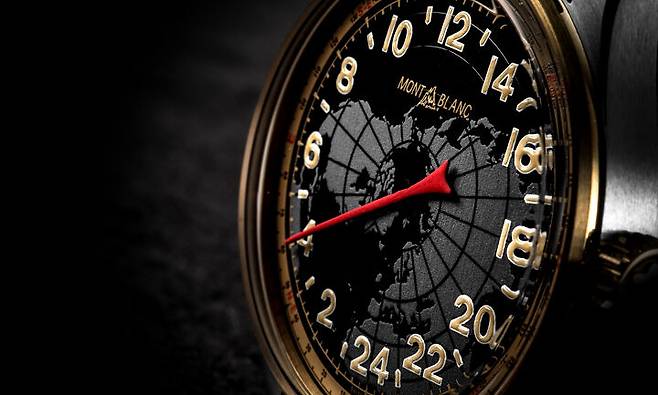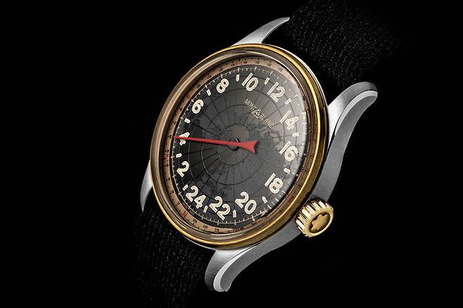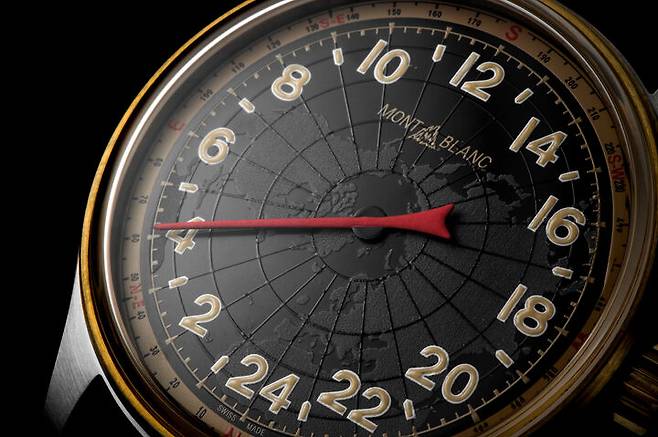 몽블랑은 2018년 1858 포켓워치 리미티드 에디션을 선보였습니다. 미네르바의 수동 크로노그래프칼리버 MB M16.24를 탑재한 회중시계로 요즘 나오는 회중시계는 특별한 의미를 담거나 메시지를 전달하기 위한 형식이 되는 경우가 많습니다. 이 모델도 그러했는데요. 크로노그래프 핸드와 카운터를 제외하면 시간 표시는 하나의 바늘이 담당하는 싱글 핸드입니다. 게다가 12시간 표시가 아닌 24시간 표시를 택했습니다. 군용 시계 장르에서 낮과 밤을 혼동하지 않기 위해 의도적으로 24시간 표시를 택하긴 했지만 흔치 않았습니다. 싱글 핸드는 태생상 정확한 분 단위 시간을 확인하기 어려운데, 12시간 표시에 비해 24시간 표시 방식은 인덱스 간의 간격이 좁아지므로 정확한 시간의 확인은 더욱 어려워지는 특성이 생겨납니다.