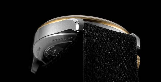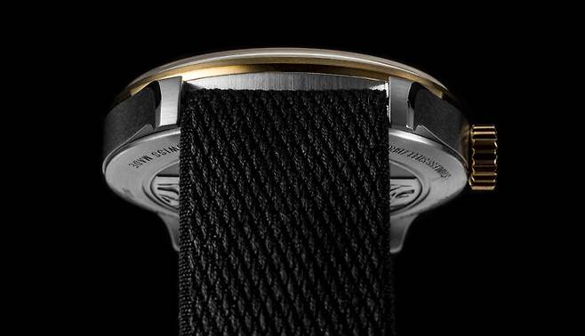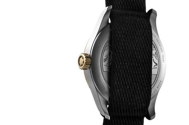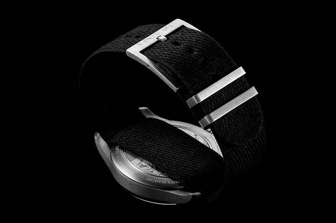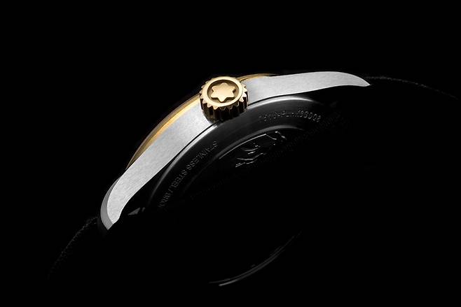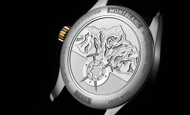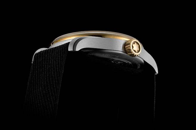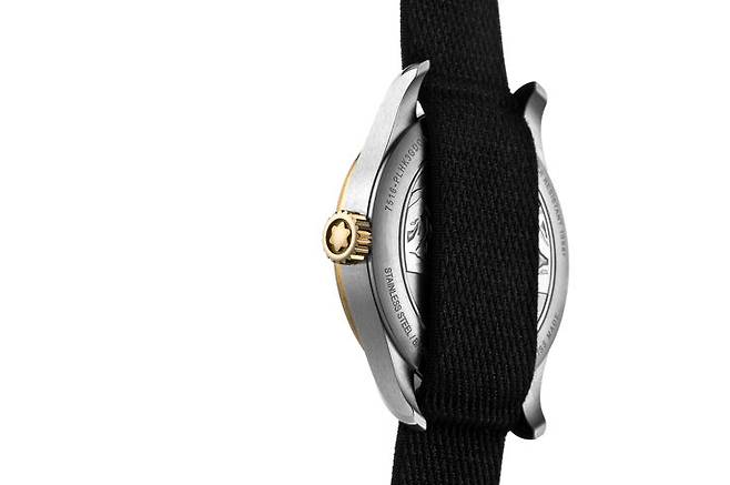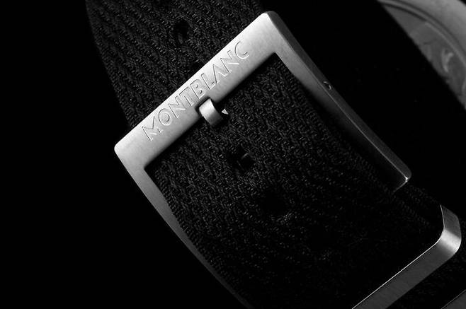 1858 컬렉션은 모험과 산악탐험이라는 주제를 뒷받침하기 위해 빈티지, 군용 시계 디테일을 즐겨 사용합니다. 1858 24H에 사용한 나토 스트랩도 같은 맥락입니다. 오리지날 나토 스트랩의 소재는 질기고 빠르게 건조는 나일론으로 군용에 적합합니다. 이 모델에서는 나토 스트랩을 고급스럽게 어레인지 했습니다. 케이스 두께를 지지할 수 있을 정도로 도톰하고 피부에 닿는 촉감이 부드럽도록 가공했습니다. 버클은 탱 버클이며 몽블랑의 이름을 선명하게 새겼습니다. 1858 24H의 스트랩과 버클은 군용 디테일을 따라 기능성을 추구했다고 볼 수 있습니다.