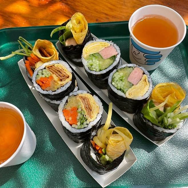 일반 김밥들보다 크기도 훨씬 커서 첨 보는 사람들은 놀란다는데요. 맛도 일반적인 맛이 아닐뿐더러 맛있다고 해요! 후식인 수정과까지 통에 담아 제공한다고 하니, 디저트 걱정도 끝! 저도 한 번 방문해보고 싶어요!!! (~˘▾˘)~