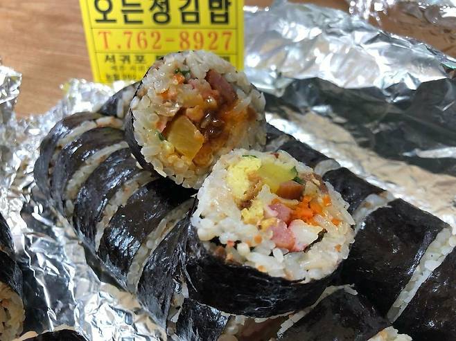 유부를 튀겨 넣어서 김밥을 씹을 때 식감이 엄청 좋다고 해요. 마치 입안에서 톡톡 터지는 느낌??먹고 나면 생각나는 맛이라서 오랜만에 먹어도 맛있다고 해요. 예전에는 실패했지만 저도 제주에 다시 가면 꼭 성공해보고 싶네요!