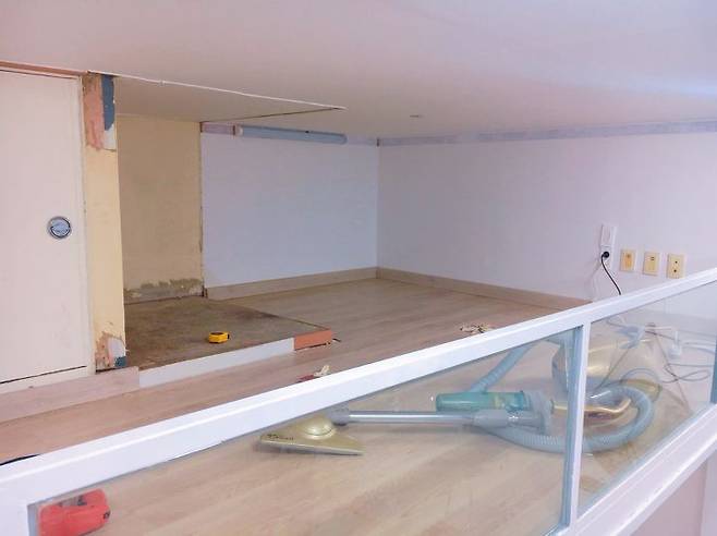 그리고 복층공간을 확장하려고 벽을 부셨더니 바닥 철골에 단차가 있고.. 진짜 멘붕의 연속이었습니다. 생각해보면 무지와 무경험에서 비롯된 문제들이겠죠. 지식과 경험이 없으니 별것 아닌 것들이 막막하고 힘들게 느껴지는 거죠.