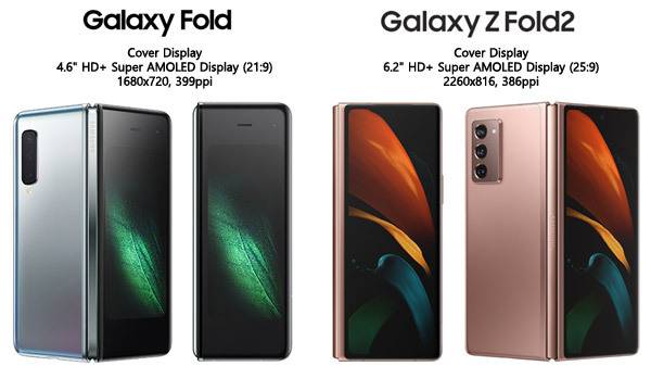 갤럭시 Z 폴드2는 이전 모델에 비해 더욱 커진 6.2형의 커버 디스플레이와 7.6형 메인 디스플레이를 탑재해 폰을 접거나 펼쳤을 때 모두 생동감 있는 콘텐츠 경험을 제공한다.
