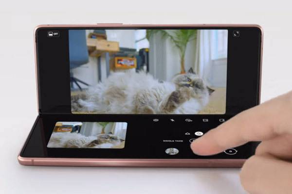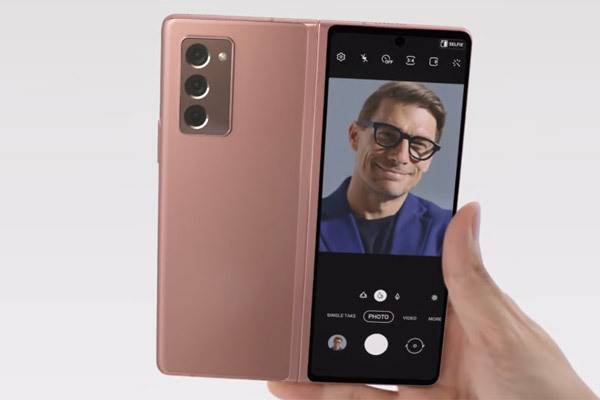 갤럭시 Z 폴드2는 폰을 펼친 상태에서 커버 디스플레이를 뷰 파인더로 활용해 고화소의 후면 카메라를 활용해 셀피 촬영도 가능하다.