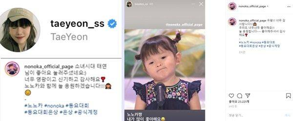 그룹 소녀시대 멤버 태연이 일본 동요 대회 스타 무라카타 노노카 양을 향한 팬심을 드러냈습니다.