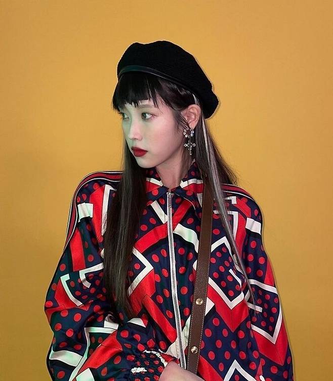 가수 겸 배우 아이유가 깜직한 베레모에 화려한 레트로룩을 선보였다.