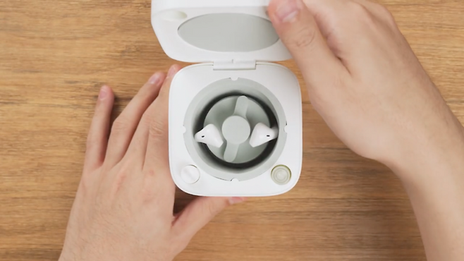 통이 회전하며 에어팟 외부를