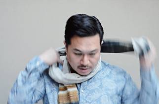 3. 한 번 두른 스카프를 반대쪽의 두 겹이 된 스카프 사이로 통과시키세요.