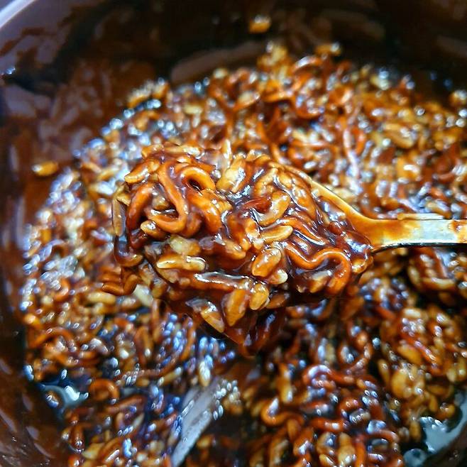 집에 남은 라면이 얇은 면이라 기존의 짜장범벅과 더 비슷했는데 저렴한 라면사리로 만들어도 괜찮을 것 같음 ㅋㅋㅋ