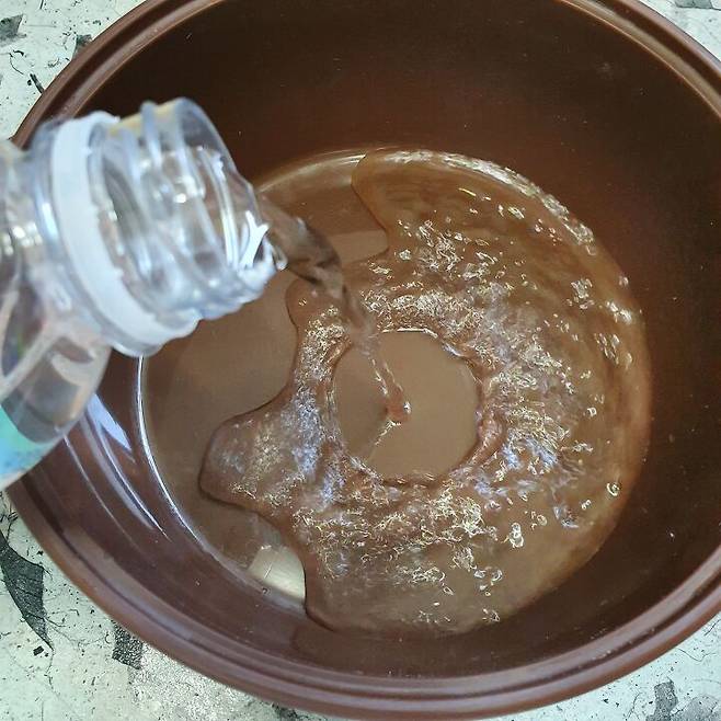 먼저 전자레인지 사용 가능한 그릇에 물 350mL 정도를 부어주고