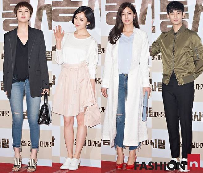 박세영은 밑단이 사선으로 커팅된 디스트로이드 팬츠와 파스텔 컬러 셔츠에 롱 화이트 코트와 강렬한 레드 컬러 스틸레토 힐을 매치해 압도적인 비율을 뽐냈다. 이영은은 레터링이 돋보이는 화이트 티셔츠에 세미 부츠컷 스타일의 밝은 컬러 데님 팬츠와 오버사이즈 스트라이프 재킷을 매치해 스타일리시한 캐주얼 룩을 완성했으며, 임수향 데님 스키니진에 그린 컬러 타탄 체크 무늬 재킷으로 편안한 극장 나들이 패션을 선보였다.