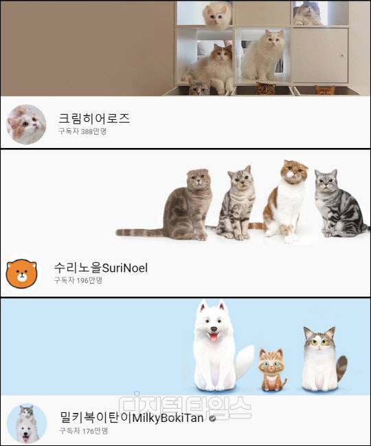 '펫'튜브 순위 ①크림히어로즈 ②수리노을 ③밀키복이탄