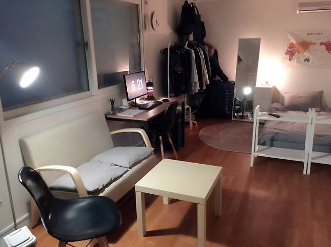 책상의 배치를 통해 침실을 분리해본 시도였는데, 기회가 된다면 책상에 합판을 덧대어서 조금 더 확실히 공간을 구분 짓는 형태의 배치도 시도해 보고 싶네요.