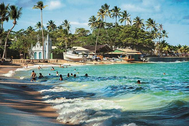 북동부에 위치한 바이아Bahia주는 브라질의 첫 번째 수도가 있었던 곳으로, 코코넛 나무가 끝없이 펼쳐진 193킬로미터 길이의 이국적인 해안을 품고 있다. 이 해안에는 다시 12개의 해수욕장이 있는데 그중 프라이아두포르치Praia do Forte와 모후지상파울루Morro de São Paulo와 보이페바Boipeba 등이 유명하다.