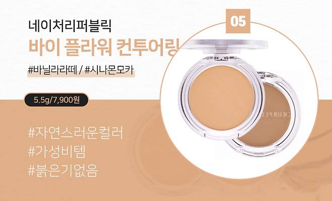 총 3가지 색상으로 1호는 하이라이터, 2호와 3호는 쉐딩으로 사용할 수 있는 제품이에요. 입자가 고와 뭉침 없이 고르게 발색되기 때문에 은은하게 블렌딩이 가능하죠. 색상도 매우 자연스럽기 때문에 쉐딩에 실패할 확률도 적답니다. 자연스러운 컬러를 원한다면 바닐라 라떼를, 좀 더 확실한 컨투어링은 원하면 시나몬 모카 색상을 구매하면 됩니다. 무엇보다 저렴한 가격이 매력적인 제품이에요.