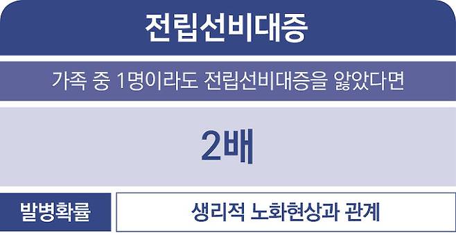 반면 가족력 질환은 혈연 간 유전자를 일부 공유한 것 외에도 비슷한 직업, 사고방식, 생활습관과 동일한 식습관, 주거환경 등 특정 질병을 유발하는 환경을 공유하기 때문에 나타난다. 일종의 ‘후천적 유전자’가 원인인 셈이다. 가족력 질환은 생활습관을 교정하거나 조기 진단을 통해 치료하면 예방이 가능하거나 적어도 발병 시기를 늦출 수 있다. 물론 가족력이 있다고 반드시 특정 질병에 걸리는 것은 아니지만 해당 질환에 걸릴 확률이 높아진다. 가족력의 영향을 크게 받는 10가지 질환에 대해 알아본다.