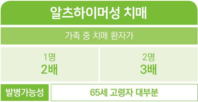 치매를 일으키는 원인은 다양하나, 치매 환자의 약 71%가 알츠하이머성 치매를 앓고 있고, 65세가 넘는 고령 환자가 대부분이다. 알츠하이머성 치매는 초기에는 별다른 이상이 없다가 시간이 흐르면서 판단력과 언어능력이 감퇴하는 증상을 보인다. 알츠하이머성 치매는 가족력이 있는 경우 발병 위험이 2배 이상으로 높아진다. 알츠하이머성 치매는 ‘아포지단백 4형’이라는 유전자의 영향을 받는데, 이 유전자형을 1개 물려받으면 2.7배, 2개 물려받으면 17.4배로 치매 발병 위험이 커지는 것으로 알려져 있다. 치매는 조기에 치료할수록 효과가 좋으므로, 가족 중에 알츠하이머성 치매 환자가 있었다면 노년기에 접어들면서부터 꾸준히 검사를 받아야 한다. 우리나라는 치매 조기검진 사업에 따라 전국 보건소에서 무료로 혈액검사와 문진검사를 받을 수 있다.