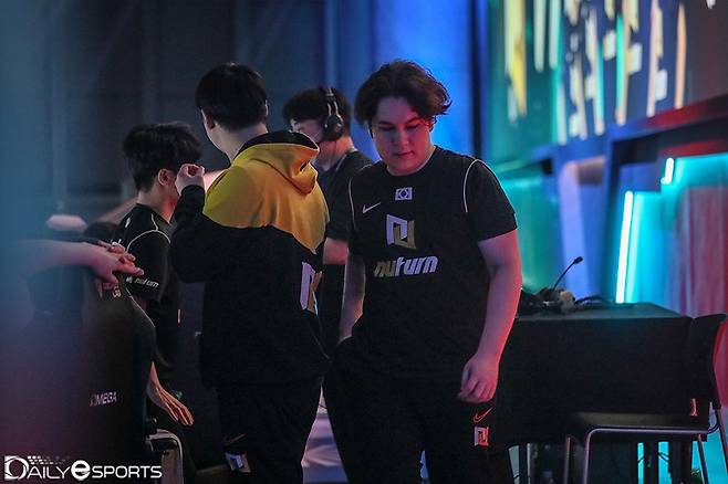 누턴 게이밍 2세트 13대 11로 아슬아슬한 승리를 따냈다. 누턴 '서제스트' 서재영이 조용히 경기석을 벗어나고 있다.