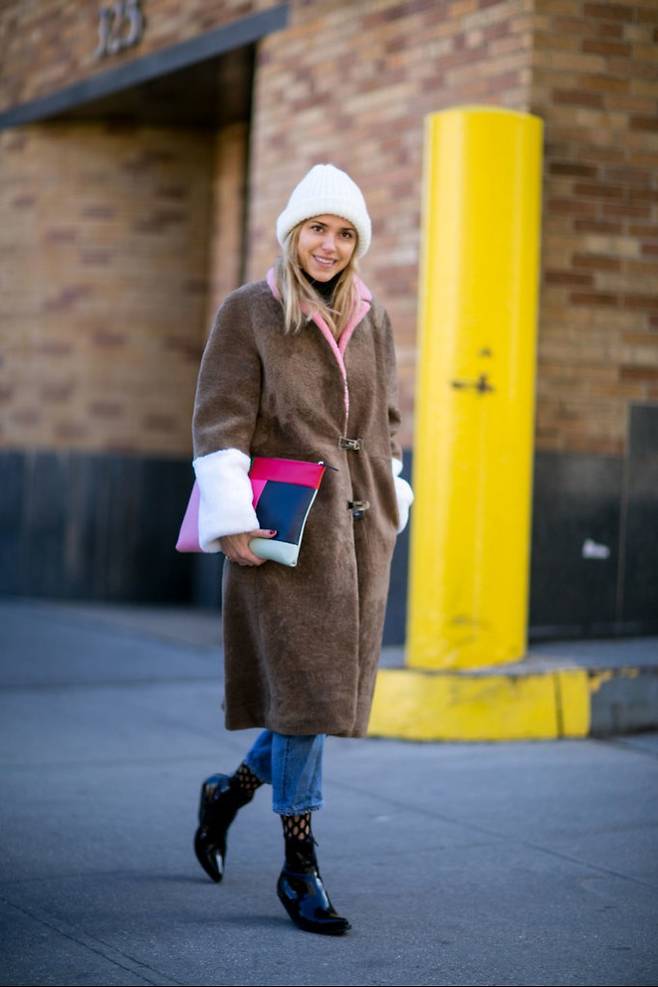 9. 털이 많아 푹신푹신한 재킷과 비니, 블랙 부티와 매치하기