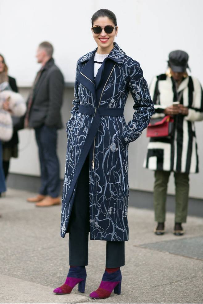 7. 패턴이 들어간 긴 외투(Duster)와 컬러플한 부츠와 매치하기
