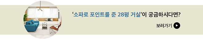 주방의 포인트가 식탁이라면 거실의 포인트는 소파라고 할 수 있는데요. 산뜻한 원색 컬러로 소파에 포인트를 주면 중후한 매력의 모던한 주방과는 반대로 유니크한 거실 인테리어가 완성돼요:D