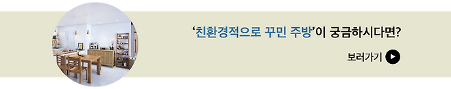 어린아이가 있는 집이라면 친환경적인 주방을 만들어 보시는 건 어떨까요? 화이트 컬러와 함께 원목 소재의 가구를 놓기만 해도 친환경적인 주방인 완성 돼요:) 내추럴 인테리어는 아이의 건강뿐만 아니라 정서를 안정시키는 데에도 도움을 주는 인테리어입니다.