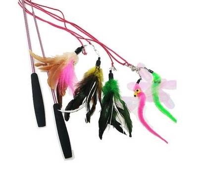 부드러운 천연 깃털과 방울이 달려 있어 관심 끌기에도 최고죠.