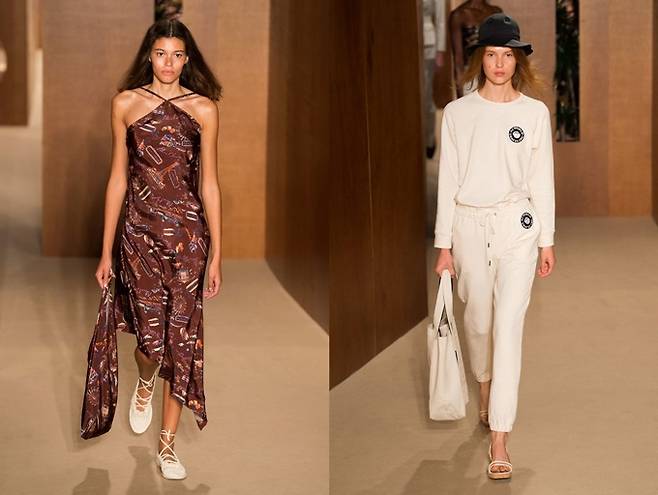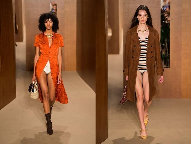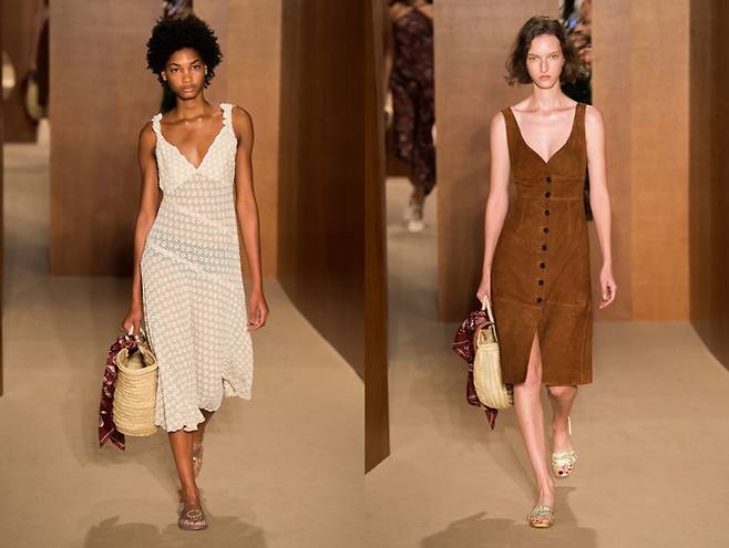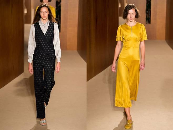비닐 레인 방수 외투, 빈티지 디테일이 매력적인 실크 파스텔 드레스, 토끼와 엽서 모티브가 특징인 프린트, 브런트 오렌지 실크 스커트와 매치된 머스타드 슈트와 같은 70년대와 80년대에 대한 다양한 콜백, 버킷 햇과 젤리 샌들 등이 대표적이었다.
