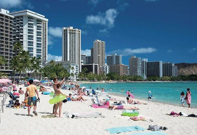 세계인의 로망이자 휴양지인 파라다이스 하와이 꽃. 하와이 관광을 이끄는 파워풀한 작은 마을 와이키키는 하와이와 동의어로 쓰일 만큼 대표적인 곳입니다.
