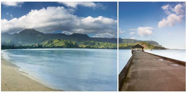 해안선이 4킬로미터 넘게 뻗은 하날레이는 하와이어로 ‛초승달’이라는 뜻. 비 내리는 산이 병풍처럼 해변을 두른 모습은 바라보는 것만으로 감상에 젖기에 충분해요.