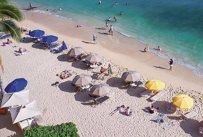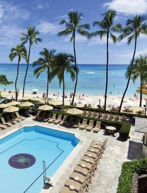 와이키키 비치에서 접근성이 가장 좋은 데다 백색 외관이 눈에 띄며, 비치바에서 칵테일을 마시거나 바다를 거닐기에 좋습니다.