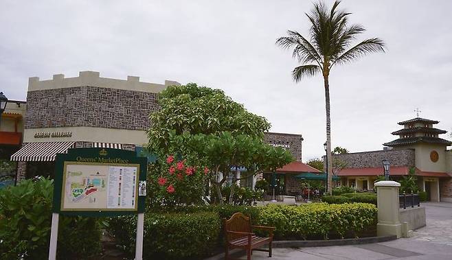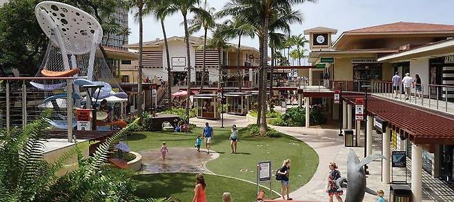 야외형 쇼핑센터로 조용하고 쾌적한 리조트의 일부 같은 느낌을 줍니다.