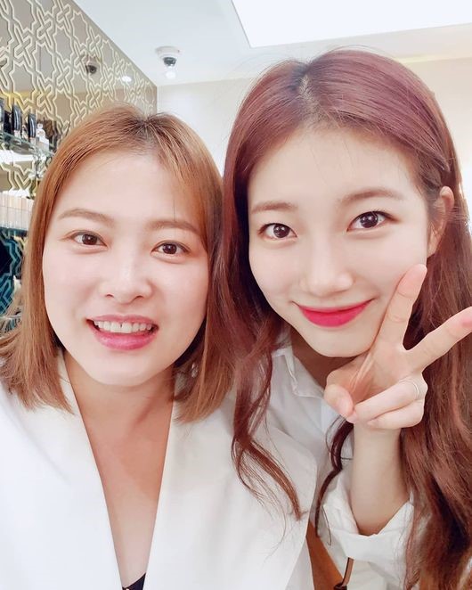 수지와 함께 찍은 인증 사진을 올리며 "심지어 사진까지~ 그것도 내 얼굴 반만 한 사람이 이렇게나 앞에 나와서~ 센스, 배려 어쩔! 덕분에 기분이가 너무 좋아졌음. 수지맞았다"라는 글을 게재했습니다.