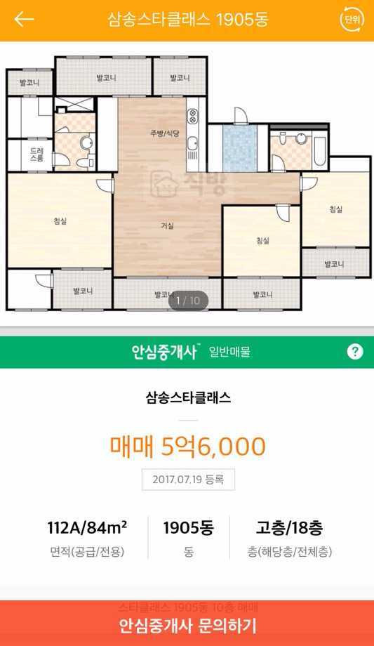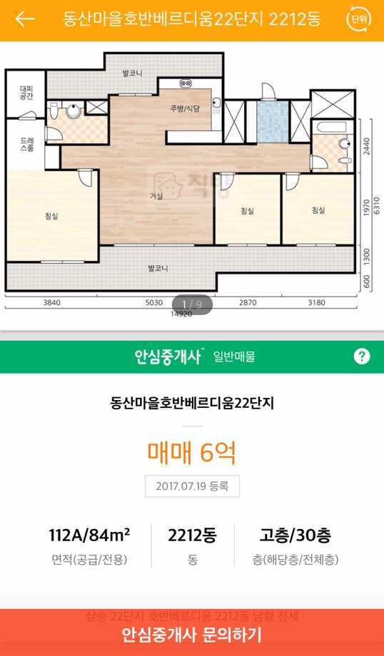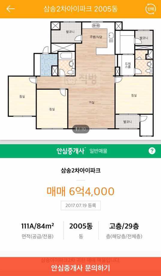 직방에 올라와 있는 매매 매물이에요.