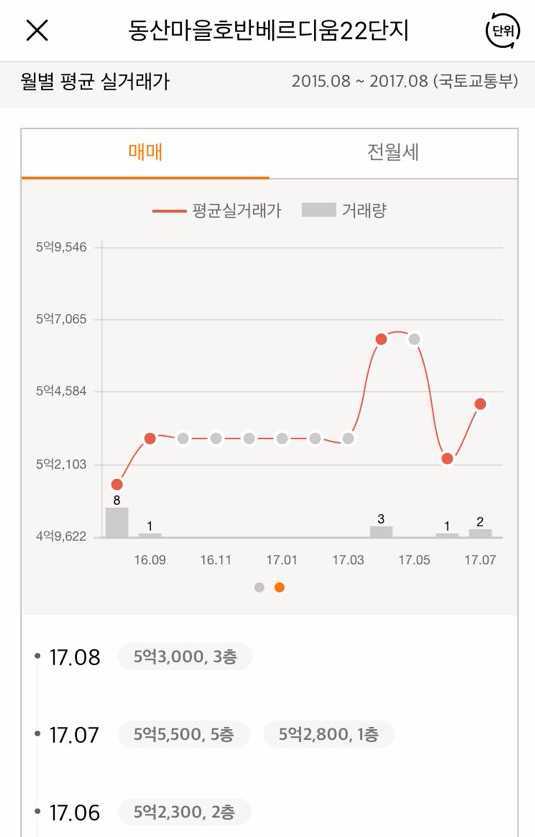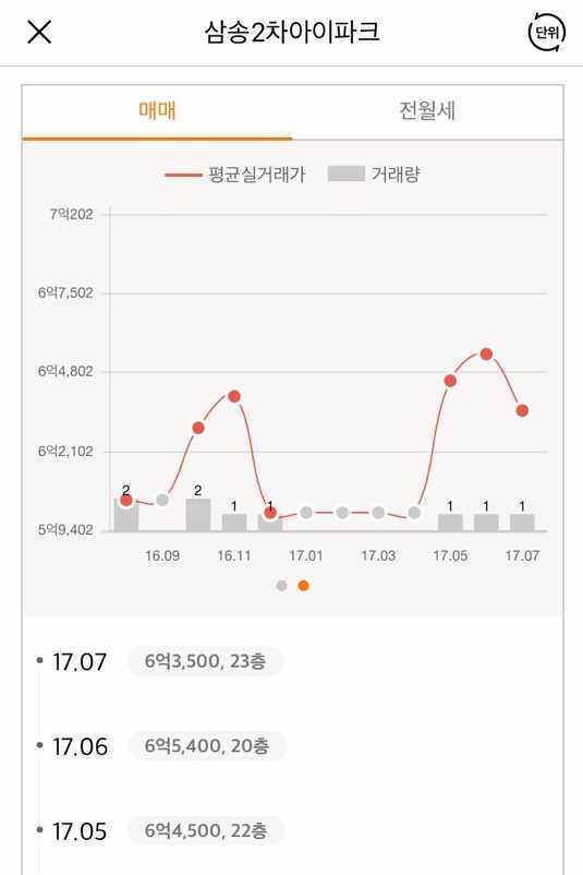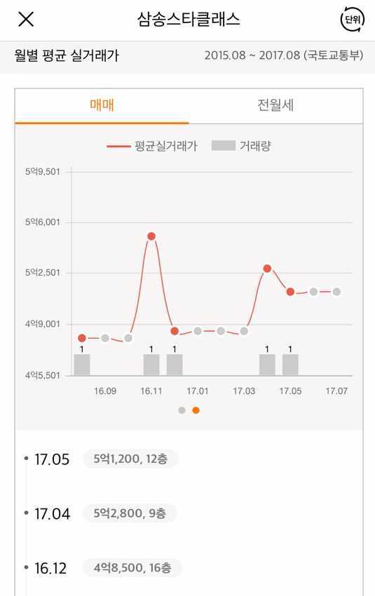 해당 타입의 국토부 실거래가를 볼까요?