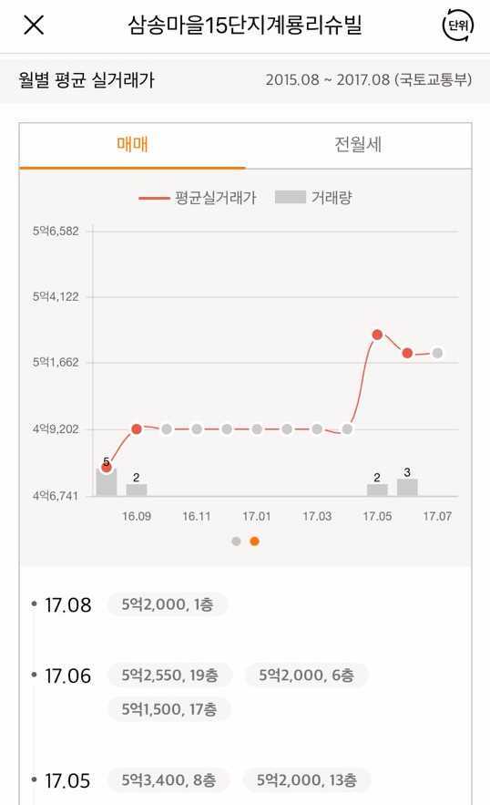 15년,16년에 비해 매매가가 많이 올랐어요.
