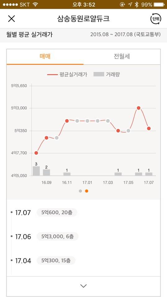 5억 3천에 3층 매물이 매매거래 되었네요.