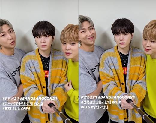 15일 방탄소년단 공식 인스타그램에는 알엠, 슈가와 지민이 '방방콘'으로 삼행시에 도전하는 영상이 게재됐다. 삼행시 짓기는 오는 17일 개최될 '방방콘(방에서 즐기는 방탄소년단 콘서트)'을 홍보하기 위해 멤버들이 릴레이로 선보이고 있는 콘텐츠다.