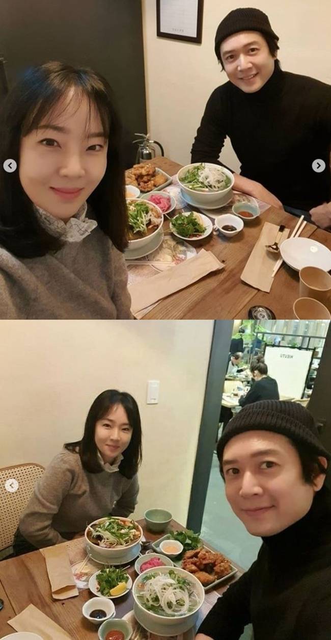 또 다른 사진에는 음식을 앞에 두고 환히 웃는 두 사람의 모습이 담겨 있다. 변함없이 달달하고 화기애애하다.