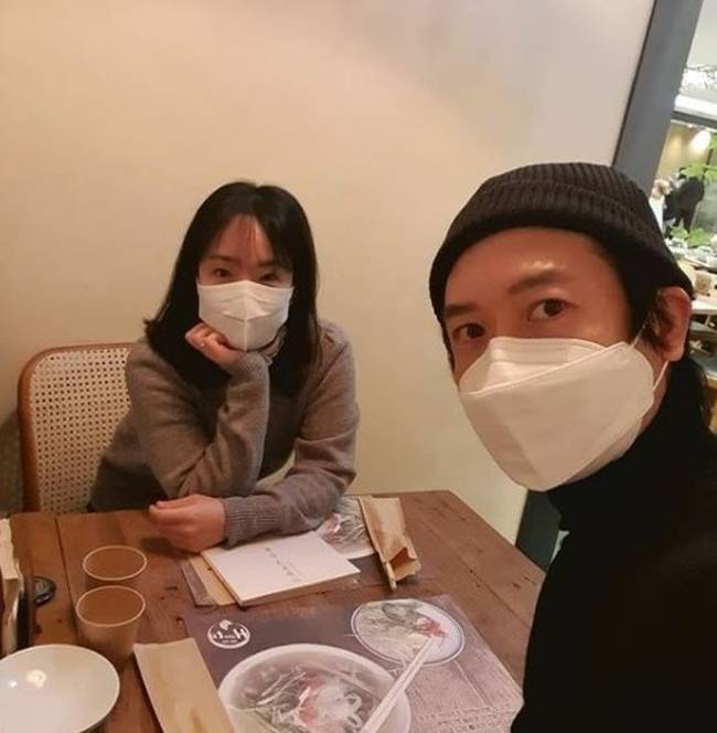 사진 속 조현재와 박민정은 쌀국수 전문점에 자리를 잡고 앉아 포즈를 취하고 있다. 음식을 기다리는 중에도 마스크를 벗지 않는 모습이다.