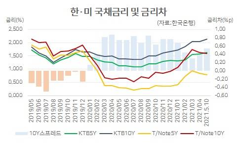 5년 국채는 은행 대출금리에 반영되는 5년 금융채와 함께 움직인다.