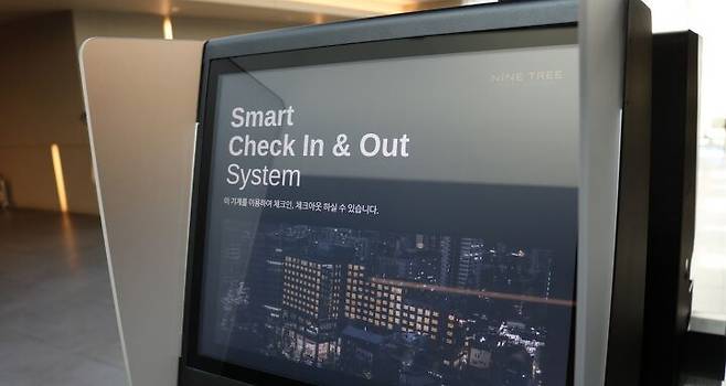 호텔 프론트 체크인과 Kiosk 셀프체크인 모두 24시간 이용 가능. 핸드폰 번호 또는 예약번호를 입력하면 객실키를 받을 수 있다.