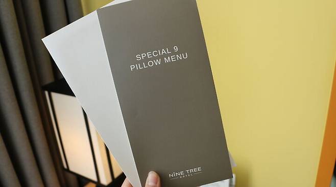베개에 민감한 투숙객을 위해 ‘나인트리 프리미어 호텔 인사동’은 특별한 서비스를 마련하고 있다. 편안한 수면을 보장하는 9가지 시그니쳐 베개를 무료로 대여 가능하다. 대여를 원할 경우, 프론트데스크로 문의하면 된다. 베개의 종류는 객실은 안내책자 또는 프론트데스크에서 확인할 수 있다.