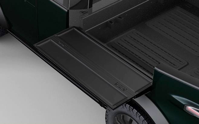 그러나 겉으로 보이는 부분이 전부가 아니다. 전기 픽업트럭만의 독특하고 실용적인 짐 공간을 자랑한다. 먼저 트렁크 바닥 길이를 1,817㎜→2,600㎜로 늘릴 수 있다. 4×8피트(1,220×2,440㎜) 규격의 합판을 여유롭게 넣기 위한 설계다. 트렁크를 연장한 채 도로를 달리도록, 양문형 테일 게이트 단면에도 리어램프를 넣었다.