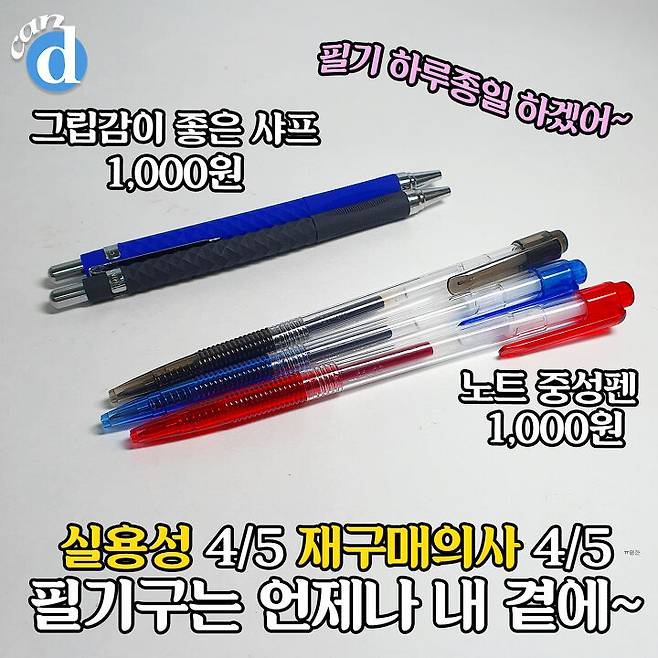 또 볼펜이 닿는 필기감이 좋아서 자주 구매하고 있어요.