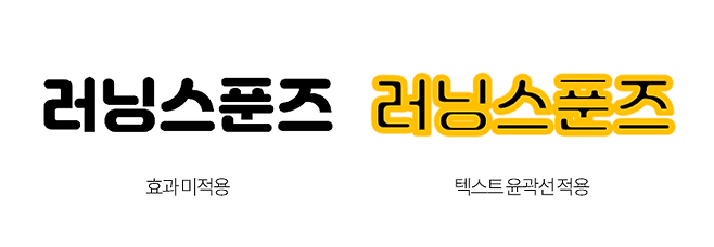 [텍스트 윤곽선]을 부여하면 텍스트 안쪽에도 윤곽선이 생기는데요! 하지만 두껍게 효과를 주게 되면 본 텍스트가 얇아지게 되죠. 여기서 본 텍스트의 손상 없이 바깥에 테두리를 그리는 국도리 강사님의 TIP 알려드릴게요!