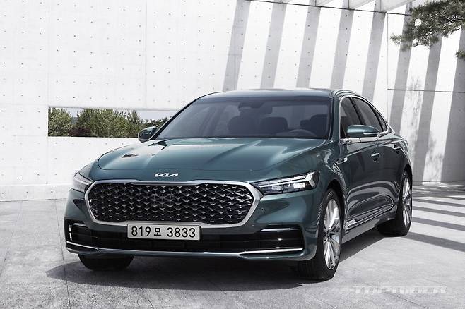 신형 K9의 외관은 크기와 너비를 대폭 키운 전면부 그릴과 슬림하게 가로로 확장된 헤드램프, 좌우가 연결된 테일램프가 특징이다. 입체적인 19인치 스퍼터링 휠이 제공된다. 파워트레인은 기존과 같은 3.3T, 3.3 GDI(법인), 3.8 GDI로 운영된다. 5.0 V8 엔진은 삭제됐다.