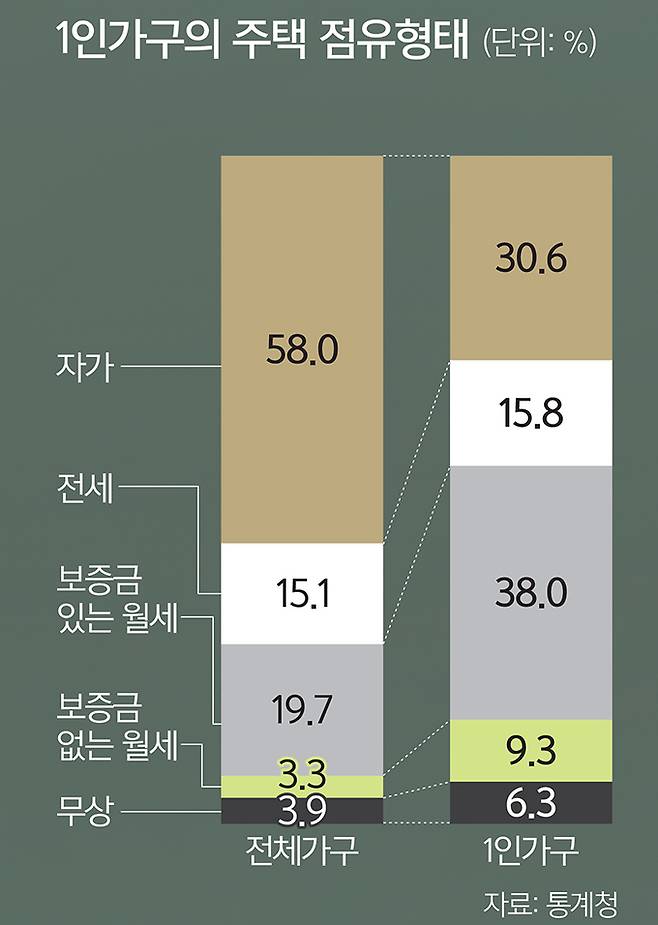정치권과 산업계가 20∼30대 1인가구를 주목하고 있다. 막 성인이 되어 독립을 시작한 20대와 경제력을 갖기 시작한 30대는 정치권엔 놓칠 수 없는 ‘부동층 표밭’이고 기업들엔 최근 들어 보편화한 1인가구 소비시장의 주력 고객들이다. 하지만 이러한 관심에 비해 청년 1인가구의 현실은 나아지지 않았다는 지적이 나온다. 특히 가파르게 올라가는 주거비용과 줄어드는 1인당 거주면적, 안전에 대한 위협 등은 청년들 삶의 질은 물론 생존권과 직결된 경우가 많다.