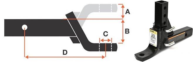 견인볼이 장착되는 볼 마운트(ball mount / Hitch)는 위, 아래로 돌려서 사용할 수 있는 구조이다. 아래로 내려가는 드롭 drop 타입과 위로 올리는 라이즈 rise 타입이다. 대부분 cm 단위가 아닌 인치 단위이므로 대략 2.54cm / 3인치, 5인치, 7인치, 9인치 단위로 높이가 달라진다. 주의할 점은 기존의 견인볼 직경이 동일한지 확인 후 주문하거나 구입해야 한다는 점이다. 볼 마운트를 바꿀 경우, 견인볼도 교체하는 것이 안전하고 하단에 2중으로 와셔, 볼트 체결, 접착제 등을 추가하는 것이 풀림 방지에 유리해진다.