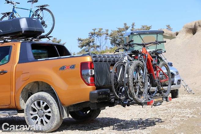 견인장치는 현재의 모델에서 변경될 수 있지만 견인장치는 견인에만 활용되는 것은 아니다. 후면부에 자전거 캐리어를 장착할 수 있고 용품과 장비 수납을 위한 카고 박스를 장착할 수도 있다. 여기서 주의해야 할 점은 일정 무게 이상은 금물이라는 점이다. 대략 60~100kg 전후로 보는 것이 맞다. 또 하나의 주의점은 자전거 캐리어나 캠핑 박스를 견인볼에 장착할 경우, 후면부 번호판이 가린다면 불법에 해당하므로 자전거 캐리어에 추가 번호판을 부착하거나 캠핑 박스에 번호판을 고정해야 한다는 점을 명심하기 바란다. 관할 구청 혹은 자동차 등록 사업소에서 추가 번호판을 발급받을 수 있다.